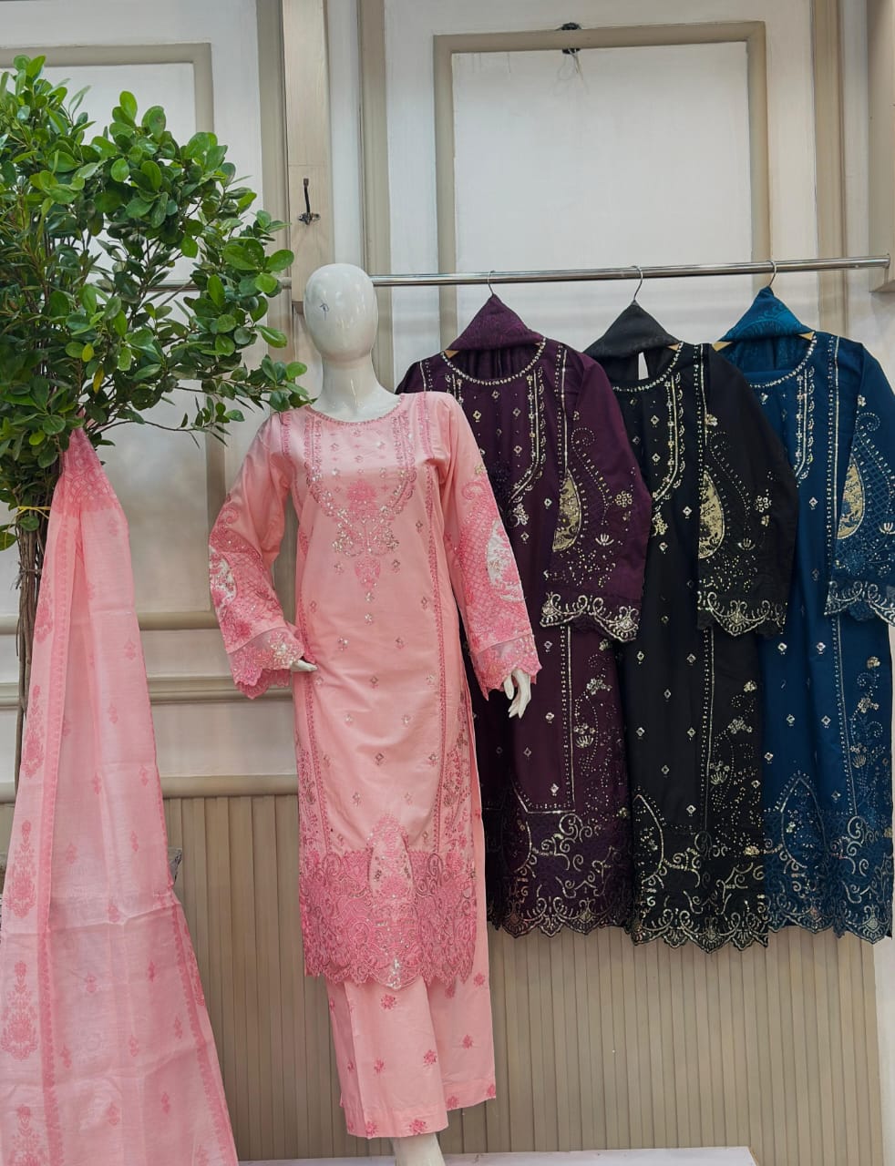 Stay warm and stylish this winter with our premium cotton 3-piece stitched dress, featuring intricate heavy embroidery for a luxurious look. Perfect for festive occasions or casual outings, this outfit combines comfort with exquisite craftsmanship.